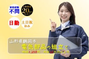 山形県鶴岡市 電気部品の組立て(日勤) 時給1,250円