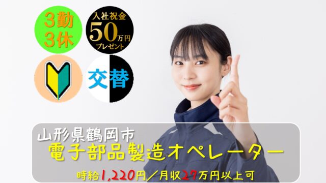 山形県(庄内) 山形県鶴岡市 小型電子部品の製造 時給1,220円