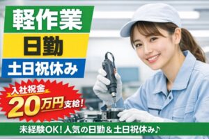 ![]() ≫ 詳細を見る ≪ 時給 2,000円/月収 320,000円以上可 日勤・土日休み(月平均20日稼働) 冷暖房完備 派遣先にて正社員登用制度あり 求人NO.0011 |